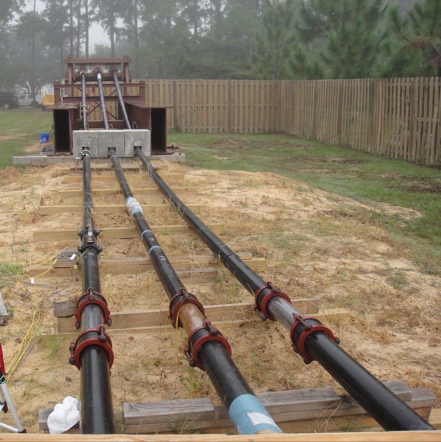 Three mock tendons are ready for testing at the FDOT Structures Research Lab.