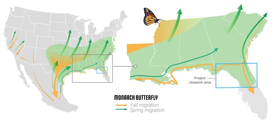 The team was working with FDOT to identify milkweed plants along roadways in North Central Florida. From Pasco and Orange counties in the south to Gadsden and Liberty counties in the north, these plants are key to supporting and preserving the monarch butterfly. While the annual migration of monarch butterflies is an incredible event to behold, these creatures and the other insects that share their habitat help maintain the health of farmland, wilderness, and other ecosystems. Florida, in particular, is situated along vital migration routes for monarch butterflies. Unfortunately, the iconic North American butterfly has been facing steady population decline for decades.