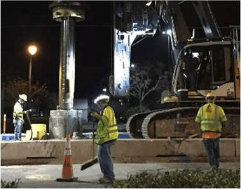 Auger cast piles are similar to drilled shafts, in that both are a type of deep foundation. The method for constructing these foundations are slightly different, as an auger cast pile uses an auger to drill the borehole and the steel reinforcing frame is added after the concrete or grout is injected. In the past, auger cast piles have only been used for non-structural elements. MWD makes it possible to use auger cast piles for structural elements because the technology allows for the required quality assurance/control measurements to be collected, which provides more confidence in the as-built product.